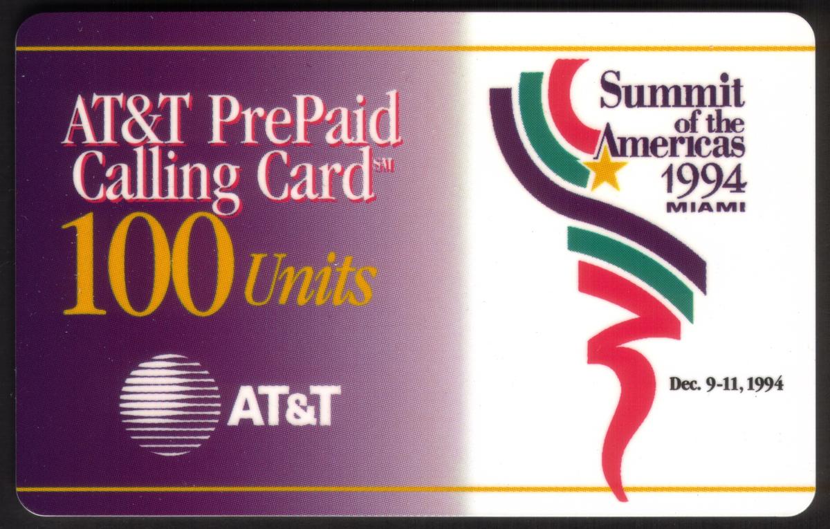 This card serves both as a functional prepaid calling card and a collectible item linked to an important political and international event that brought together leaders from across the Americas to discuss regional cooperation and trade.