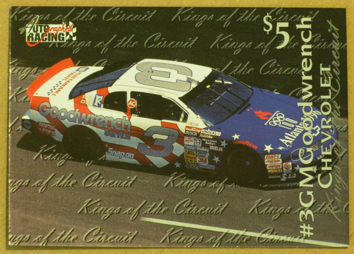 Keywords: Sports: Auto Racing, NASCAR, automotive, automobiles, autos, cars, #3 gm goodwrench chevrolet, 1996 olympics, atlanta olympics, busch beer, unocal, snap-on, rca, 3m, 76, autographed racing, kings of the circuit, autograph racing, The Score Board Inc.
