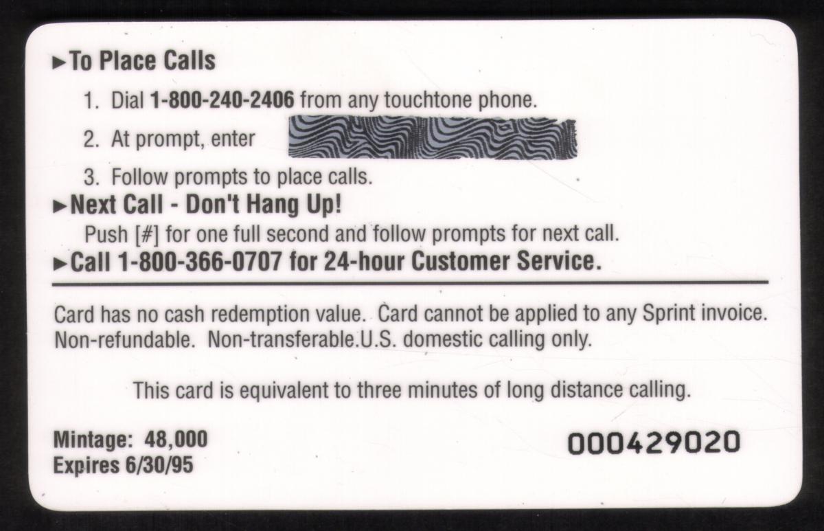 Since we have the world's largest inventory of USA phonecards for collectors, you will not necessarily receive the identical serial/batch/PIN number that we have scanned/pictured.
