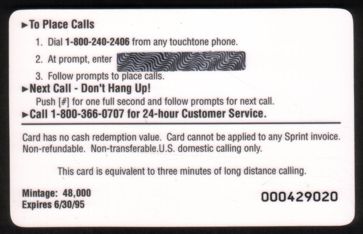 Since we have the world's largest inventory of USA phonecards for collectors, you will not necessarily receive the identical serial/batch/PIN number that we have scanned/pictured.