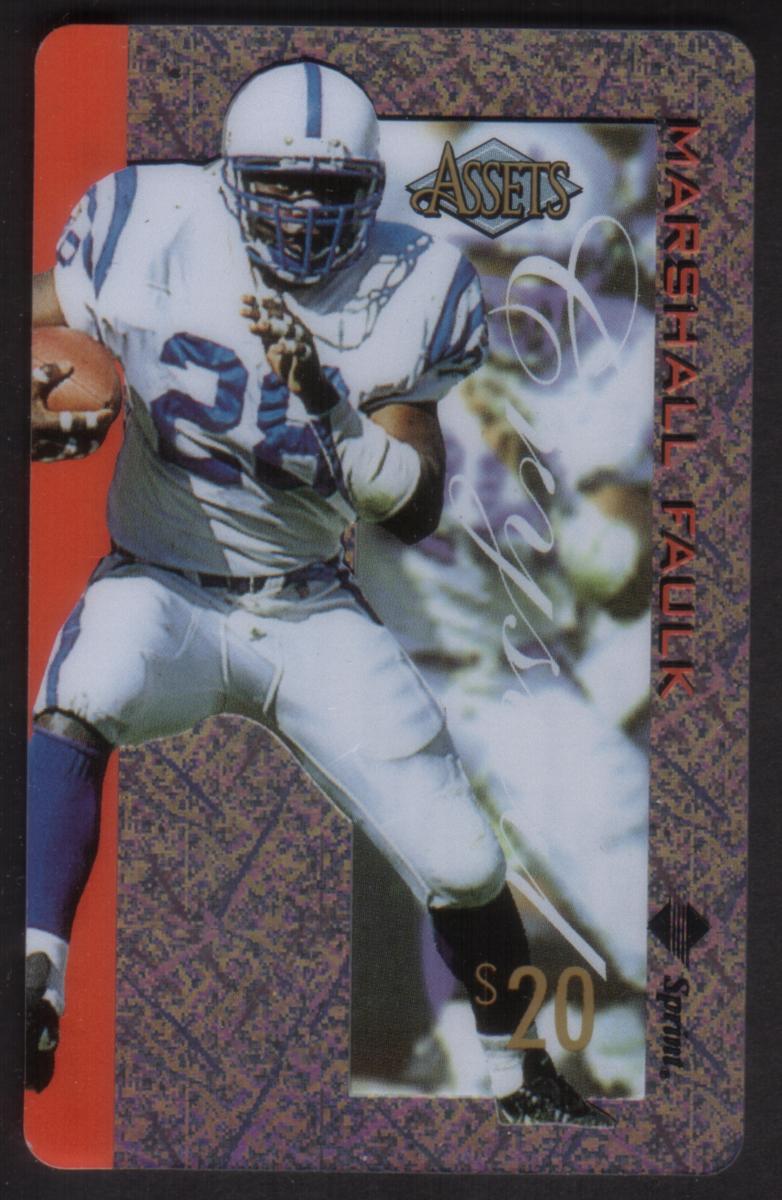 This Marshall Faulk card is officially licensed by the National Football League and the NFL Players Association. It captures the essence of NFL football during that era, making it a valuable item for collectors interested in football memorabilia and the history of NFL players.