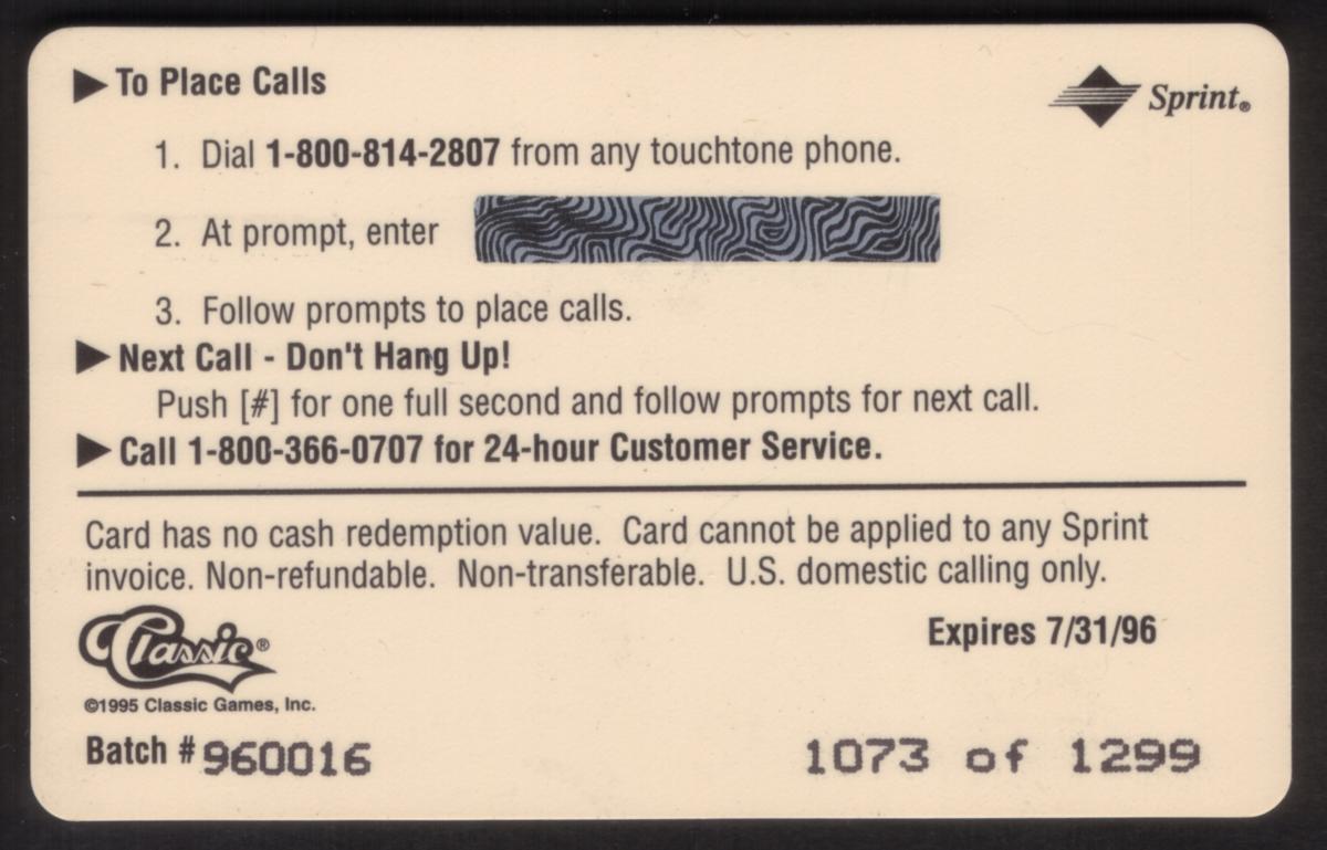 Since we have the world's largest inventory of USA phonecards for collectors, you will not necessarily receive the identical serial/batch/PIN number that we have scanned/pictured.