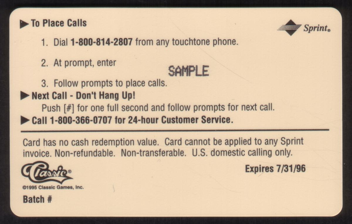 Since we have the world's largest inventory of USA phonecards for collectors, you will not necessarily receive the identical serial/batch/PIN number that we have scanned/pictured.