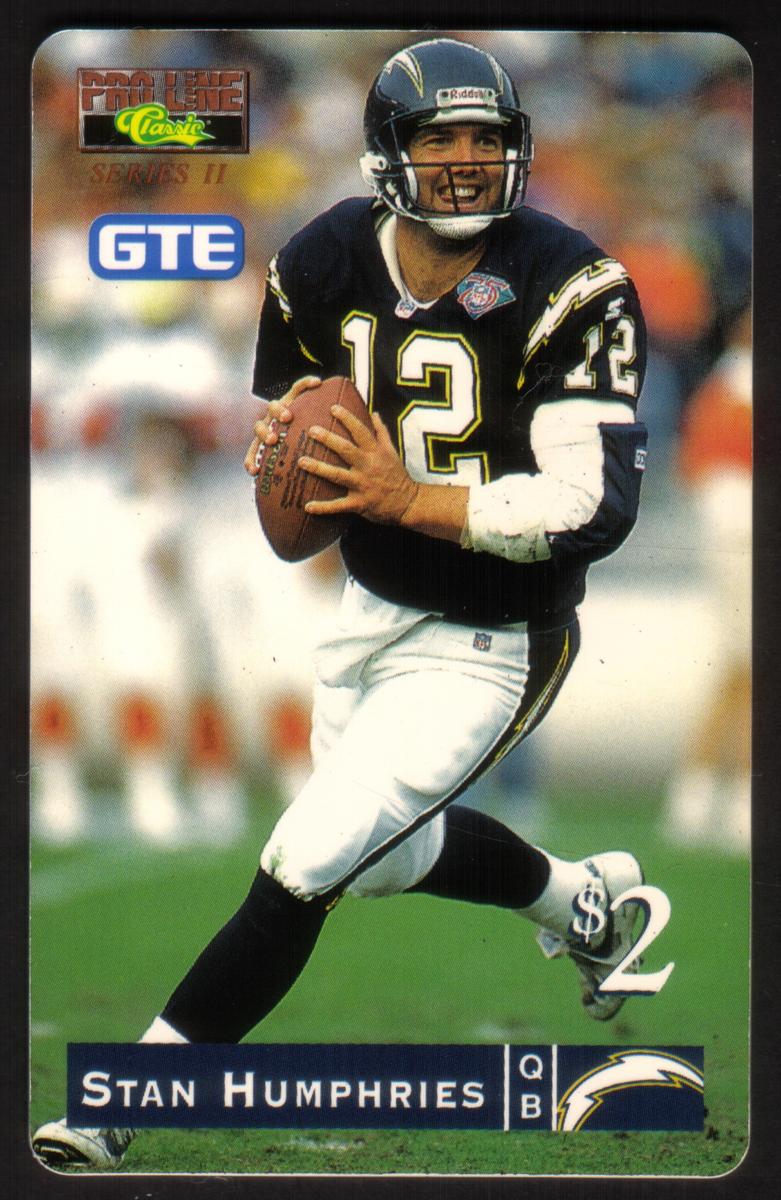 Overall, this sports collectible card from the Score Board Proline 2 series celebrates Stan Humphries’s NFL career with clear visual focus on the player, his team affiliation with the San Diego Chargers, and official NFL branding elements.