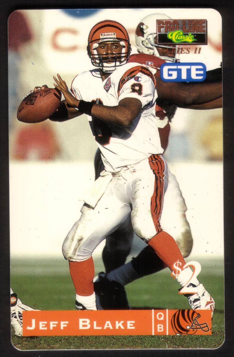 This card celebrates Jeff Blake’s career in professional football and is part of a focused, numbered collectible football card set from The Score Board. The graphics and text provide clear, factual information connecting Jeff Blake to the NFL and the Proline 2 collection.