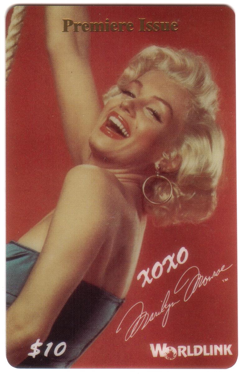 This collectible phone card features an image of Marilyn Monroe, one of Hollywood’s most iconic actresses. The card showcases Norma Jeane, Marilyn Monroe’s birth name, in a smiling side view wearing a blue dress. The vibrant colors and clear portrait emphasize her elegance and charm, celebrating her status as a famous film star.