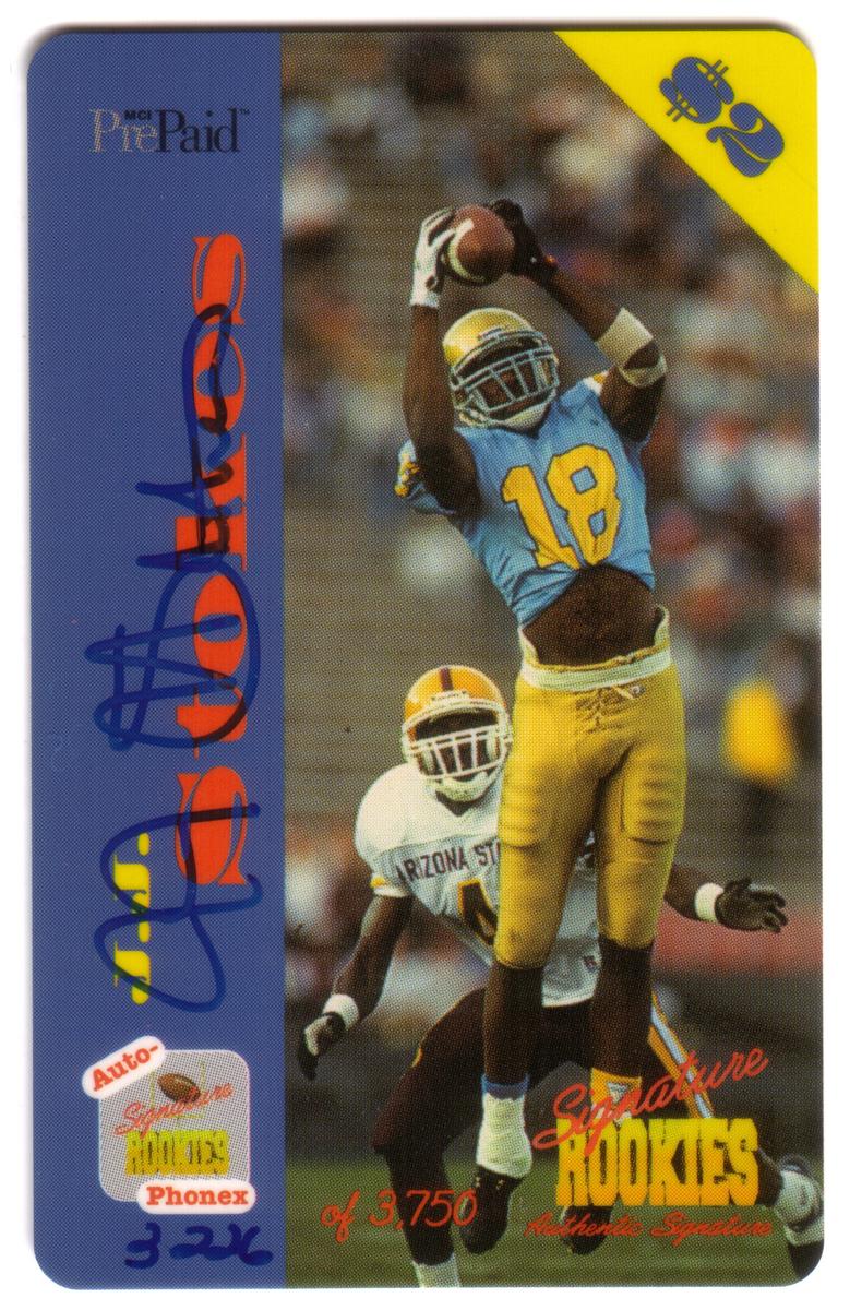 The card displays the logos of Auto-Phonex and MCI Communications, highlighting corporate sponsorship and branding associated with this collectible. The design incorporates a rich combination of colors and text, with "Signature Rookies" clearly labeled to denote the rookie player focus of the series. The style of the card aligns with football-themed collectibles, targeting fans and collectors interested in rookie NFL athletes.
