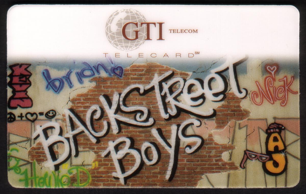 This collectible phone card features the Backstreet Boys, a famous American boy band known for their influence in pop and rhythm and blues music. The card highlights the group with a colorful, graffiti-style design on a wall, emphasizing the urban street art theme. The Backstreet Boys are presented as pop culture icons, associated with entertainment, music, and celebrity.
