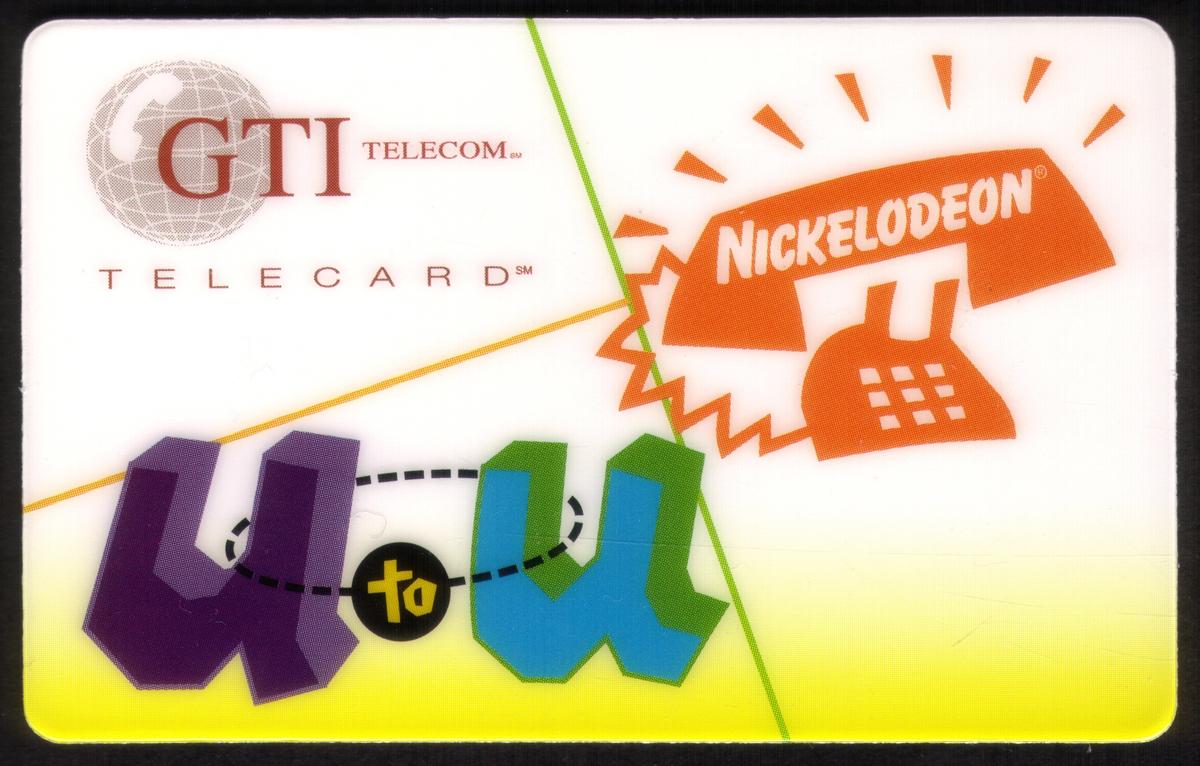 Alongside the Nickelodeon branding, the phone card includes various graphic elements that reinforce its connection to children’s shows and animation, including stylized shapes and patterns. The card was issued by GTI Telecom, Inc., a telecommunications company, and it has a value of 3m, indicating the calling units available for phone use. This 3m value is marked with the phrase "U to U," which is included as part of the card’s design and inscription.