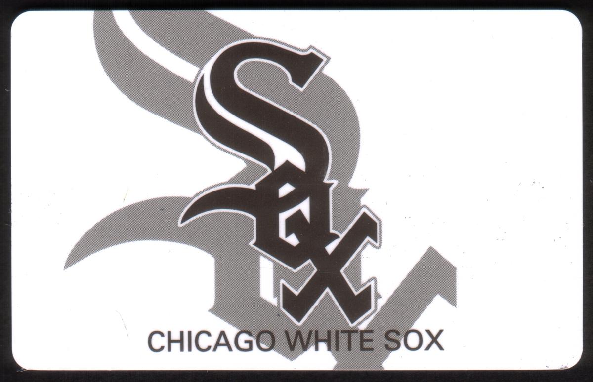 This collectible card features the logo of the Chicago White Sox, a Major League Baseball (MLB) team. The logo is prominently displayed in the center of the card with a clean white background. The design highlights the team’s name "Chicago White Sox" with the classic stylized "Sox" lettering in black. The overall composition emphasizes the team’s identity within American baseball history.