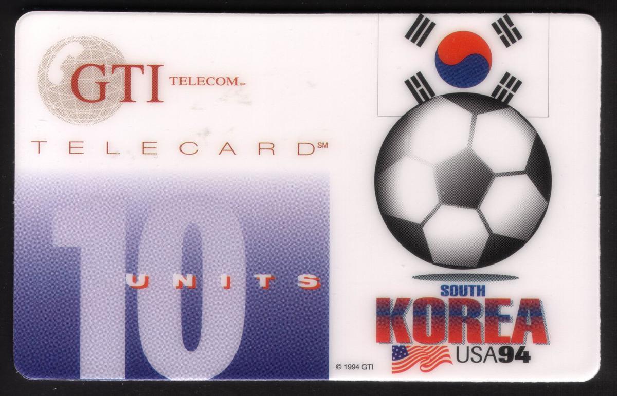 No players or individual persons are depicted on this card. The emphasis remains on the event, international flags, and soccer elements to celebrate the 1994 World Cup tournament where South Korea participated. The card is part of a collection highlighting international soccer themes and offers a distinct, colorful representation of the 1994 World Cup event.