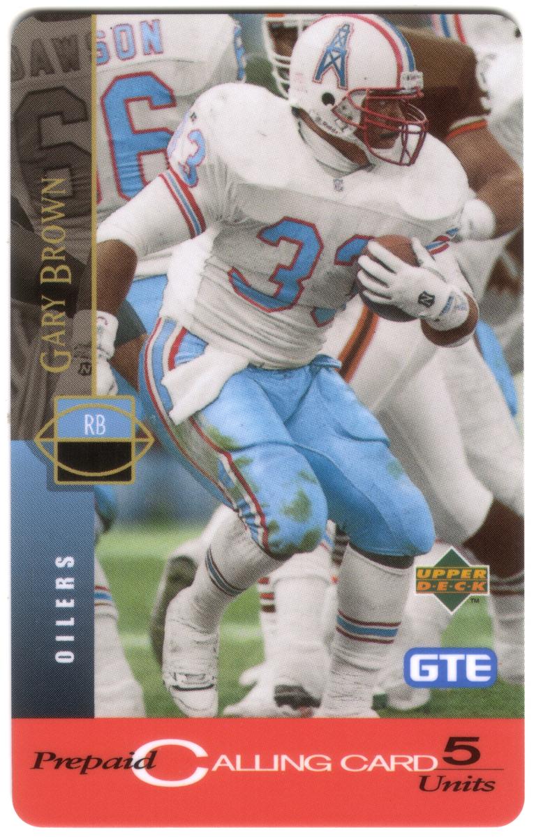 This card is an official collectible issued by Upper Deck, a well-known trading card company specializing in sports memorabilia. It celebrates Gary Brown's role and contributions in NFL football and captures a moment of athletic performance, making it a valued item for football collectors and fans of the Houston Oilers.