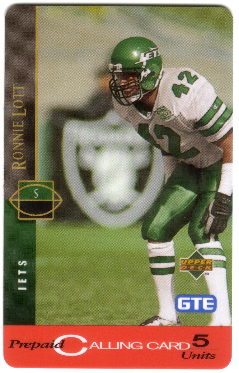 This card is part of the Upper Deck series, which is recognized for producing football collectible cards. The card incorporates clear references to the sport, player position (Safety), team name (Jets), and NFL affiliations, making it a verified football trading card highlighting Ronnie Lott's role within the American Football Conference.