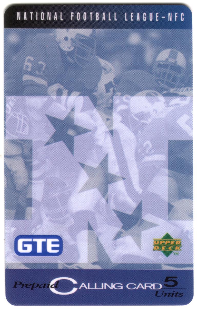 The card features official NFL branding, including the NFL shield logo and the NFC insignia, emphasizing its connection to the league and the conference. In addition, the card includes the branding of Upper Deck, a well-known sports memorabilia company, and the logo for GTE, a telecommunications company. The card is part of a series titled "Big 'N' - Sprint (GTE)," linking it with a promotional or marketing effort involving Sprint and GTE.