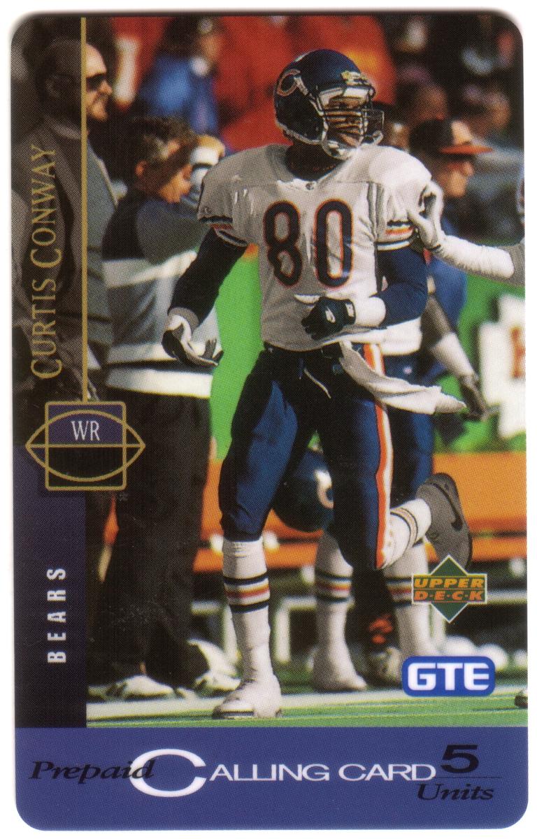 This card represents a collectible item aimed at football fans, NFL memorabilia collectors, and sports card enthusiasts. It captures Curtis Conway during his playing career with the Bears in a dynamic action pose tied to the NFC Football series by Upper Deck and Sprint (GTE), reinforcing its association with the team and player in professional football.