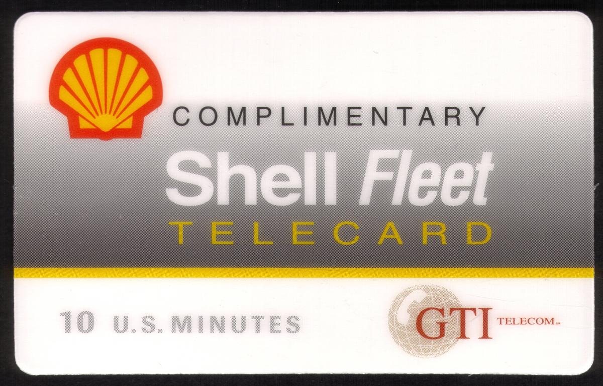 The card is issued by GTI Telecom, Inc., whose name is printed in the lower right corner. The background is primarily white, giving the graphics and text clear visibility. The overall layout is simple and functional, focusing on the Shell brand associated with oil, fuels, and automotive transportation. The design suggests it was created for promotional use connected to Shell’s fleet services.