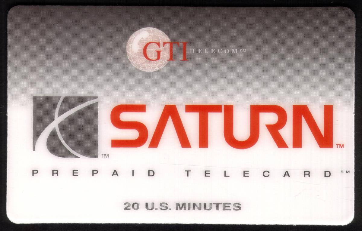 At the top left corner, the word "Transportation" appears in small uppercase letters, connecting the card’s theme directly to automobiles. The overall layout is clean and focused on the Saturn automobile logo along with the key corporate branding information.