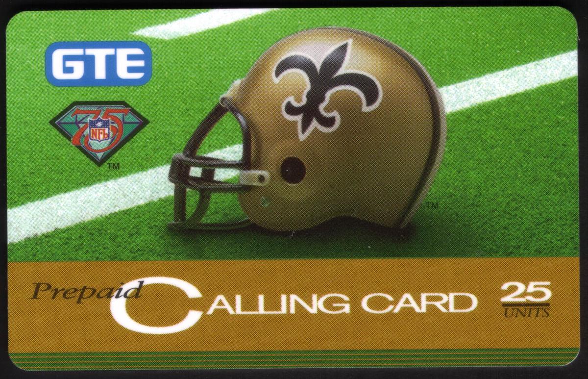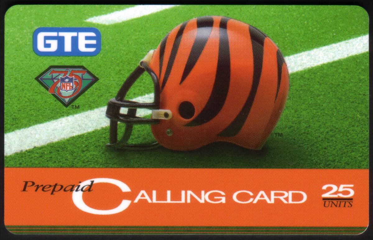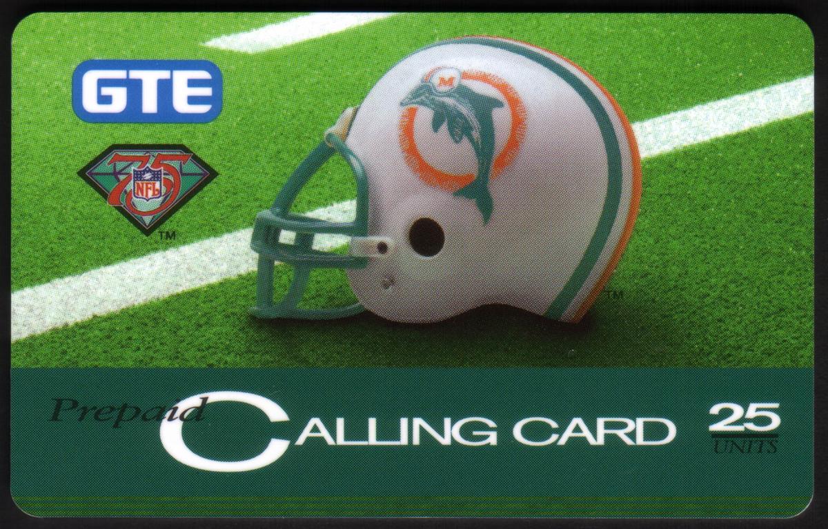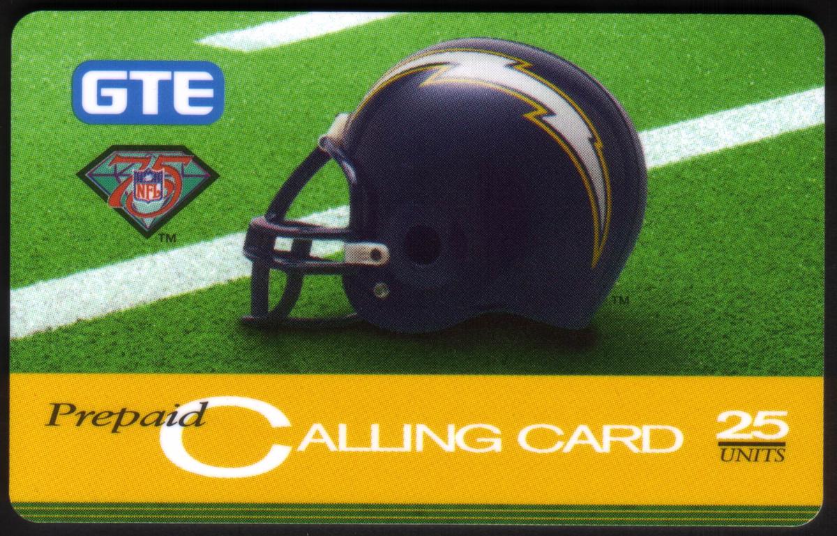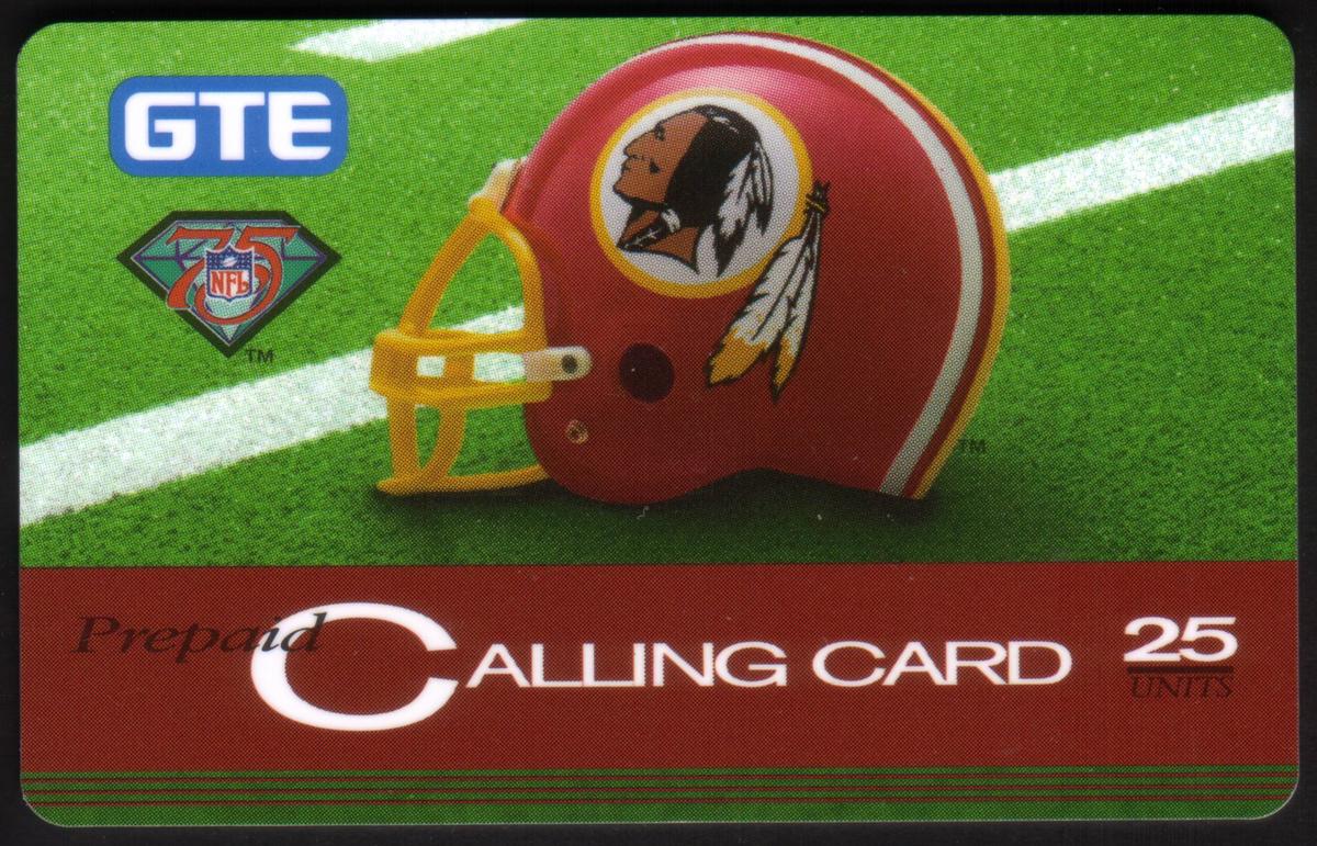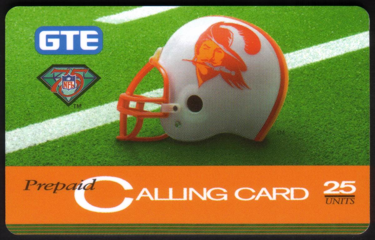 This set of collectible prepaid calling cards from GTE commemorates the 75th anniversary of the National Football League (NFL). Each card prominently features a detailed photographic image of a classic NFL football helmet, shown on a green football field background marked with white yard lines. The helmets represent various NFL teams and are depicted in full color, highlighting their distinctive team logos and designs. The NFL 75th Anniversary emblem and GTE logo appear on each card, reinforcing the official nature of this series.
