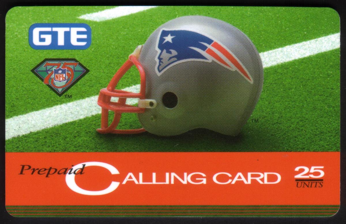 Each calling card designates a prepaid value in units—five units on the set card and predominantly 25 units on the individual helmet cards, except for a few cards featuring different colored unit markings. The team helmets are showcased in vibrant colors, with the helmet logos distinctly visible, providing fans and collectors an attractive homage to the NFL's heritage through these functional and collectible calling cards issued by GTE.