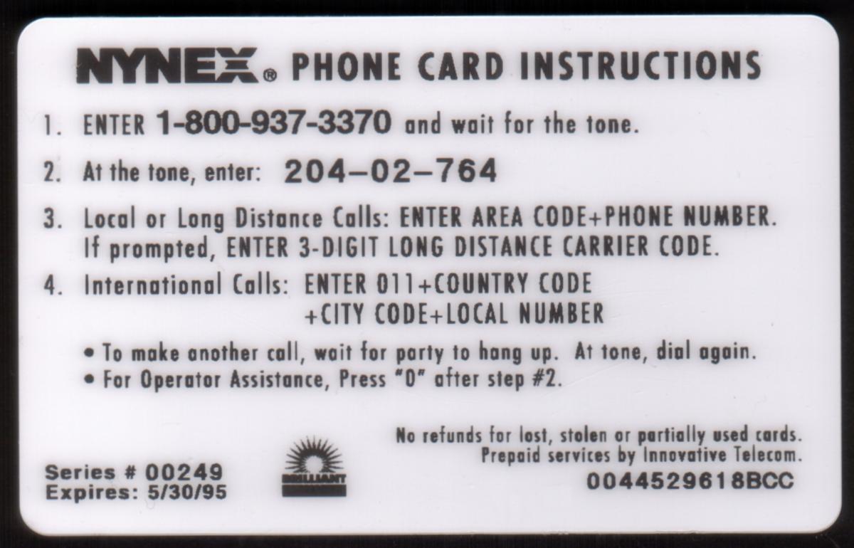 Since we have the world's largest inventory of USA phonecards for collectors, you will not necessarily receive the identical serial/batch/PIN number that we have scanned/pictured.