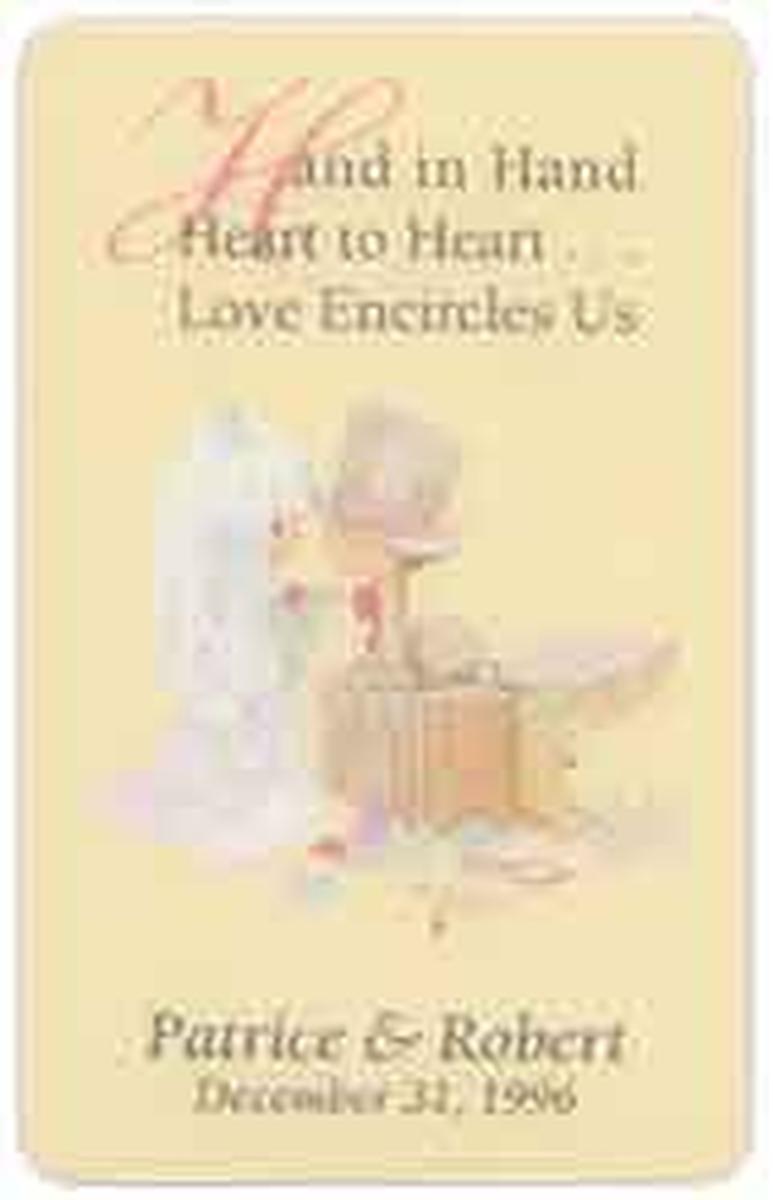 At the top of the card, the text “Hand in Hand...Love” is displayed, along with the names "Patrice & Robert" and the date "12/96," indicating a specific wedding date in December 1996. The card also includes the text "SAMPLE" and “Innovative Telecom,” the latter identifying the telecommunications company associated with the card. The overall design uses bright, cheerful colors and a clean, cartoonish style to create a joyful atmosphere celebrating marriage and family togetherness.