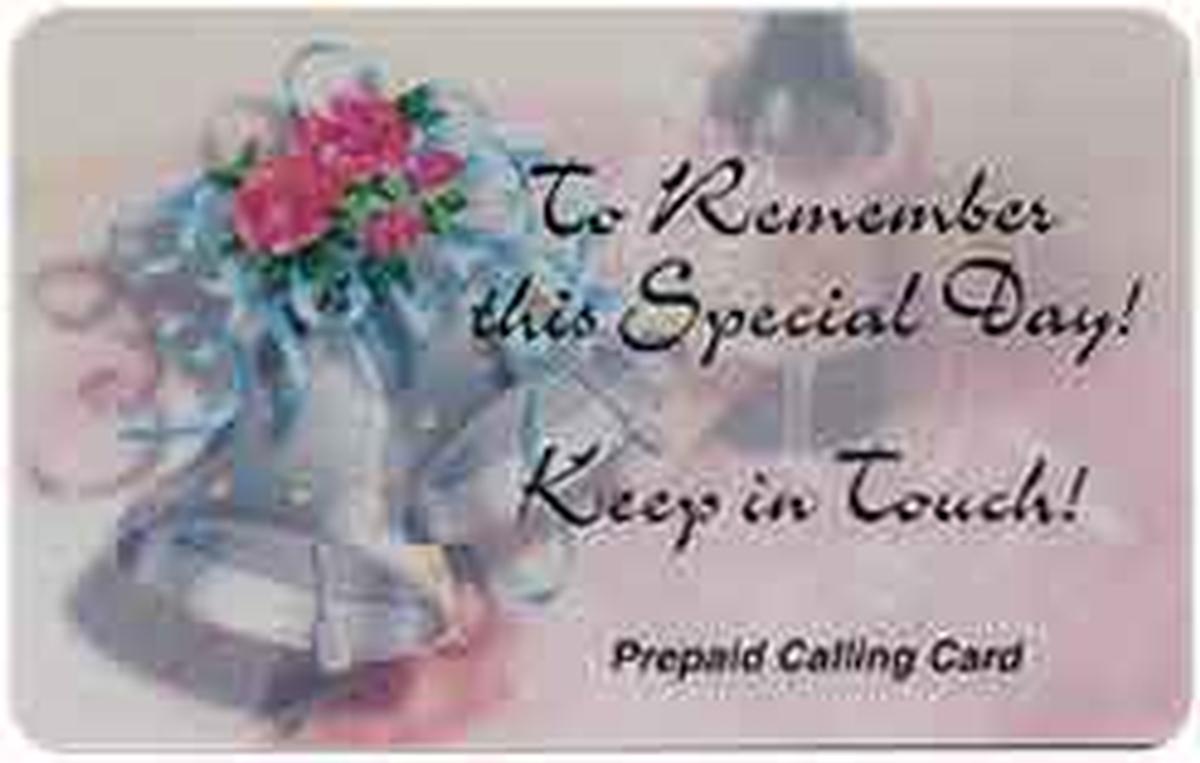 This collectible promotional card titled "Wedding Bells & Greetings: To Remember This Special Day" features a visually rich design centered on love and marriage. The artwork prominently displays pink roses and multiple heart shapes, symbolizing romance and celebration. The phrase "To Remember This Special Day" is clearly printed on the front, emphasizing the theme of weddings and special occasions.