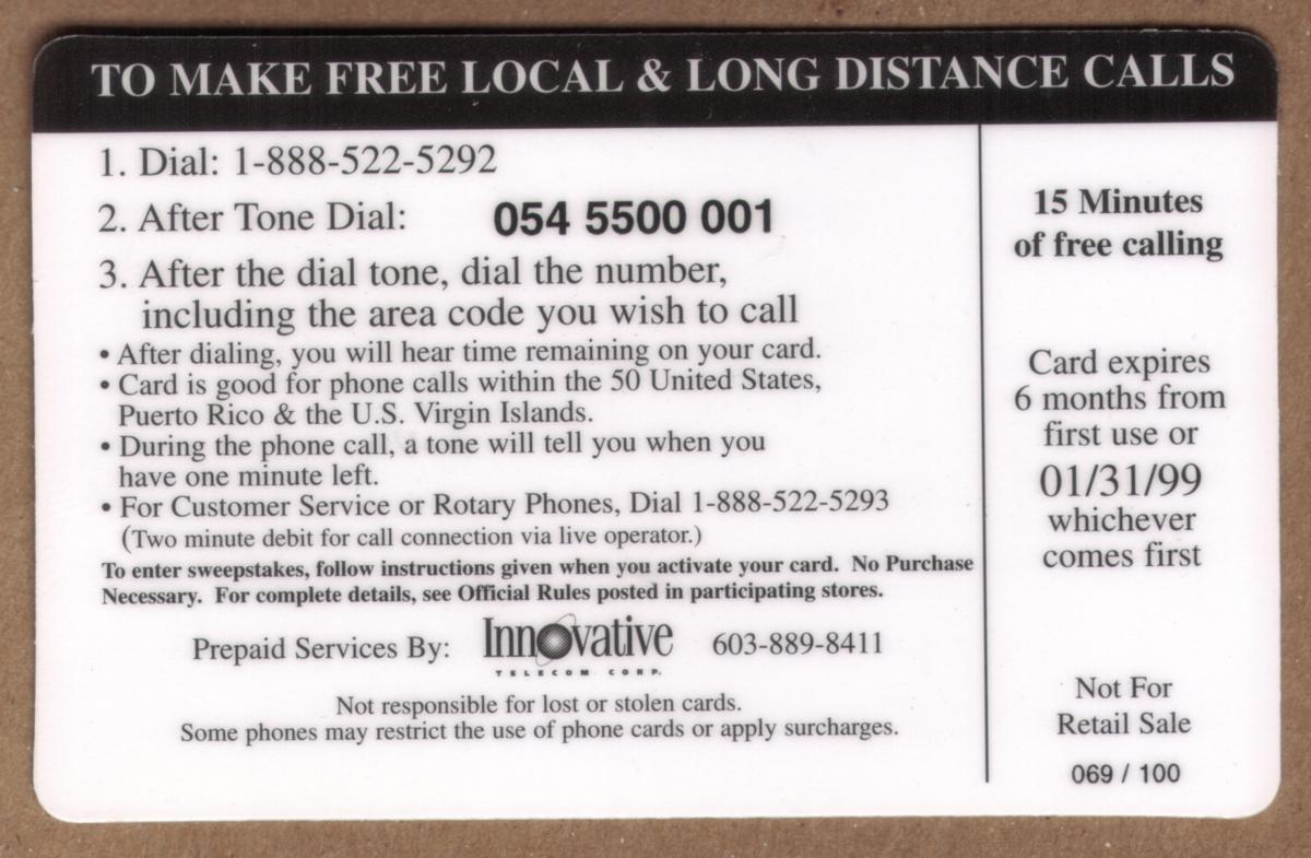 Since we have the world's largest inventory of USA phonecards for collectors, you will not necessarily receive the identical serial/batch/PIN number that we have scanned/pictured.