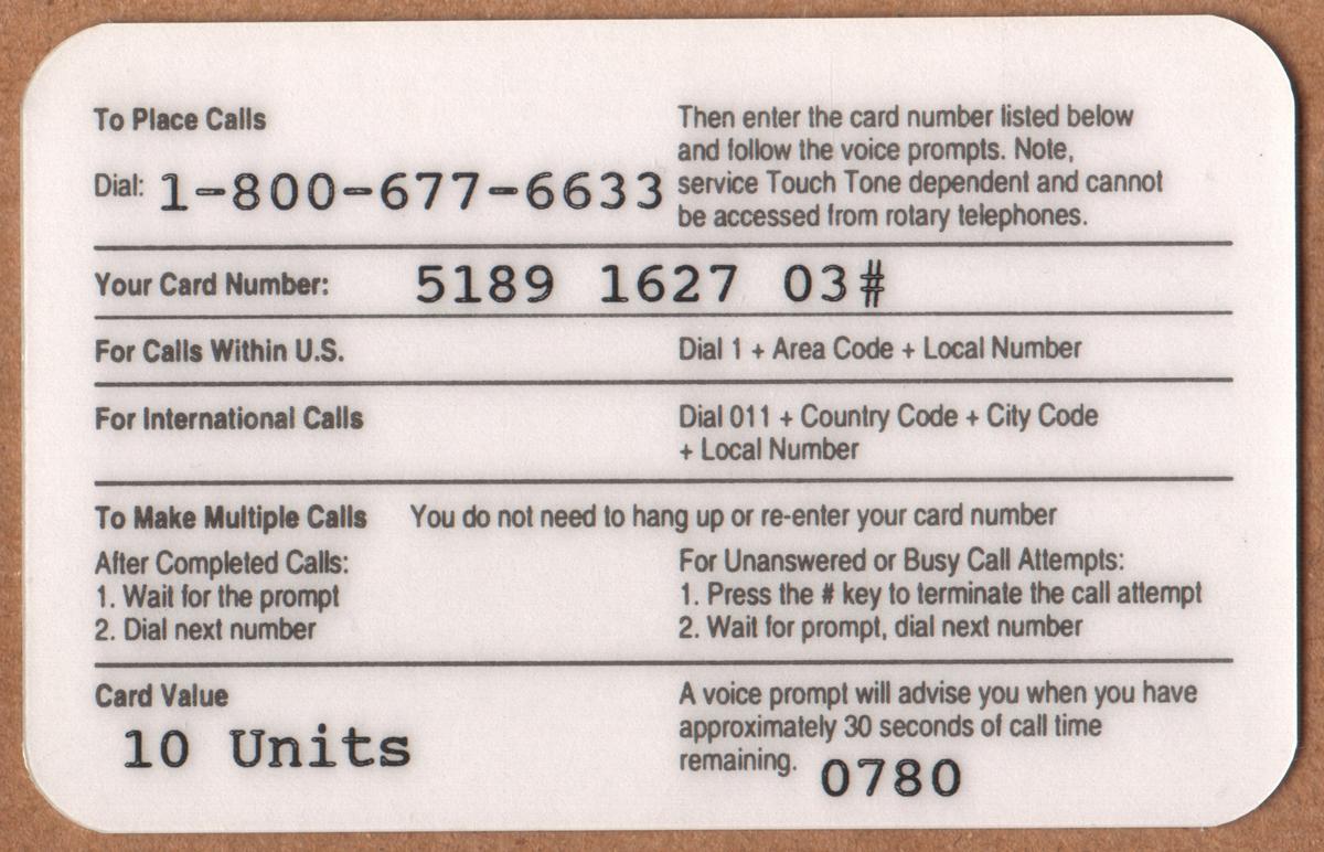 Since we have the world's largest inventory of USA phonecards for collectors, you will not necessarily receive the identical serial/batch/PIN number that we have scanned/pictured.