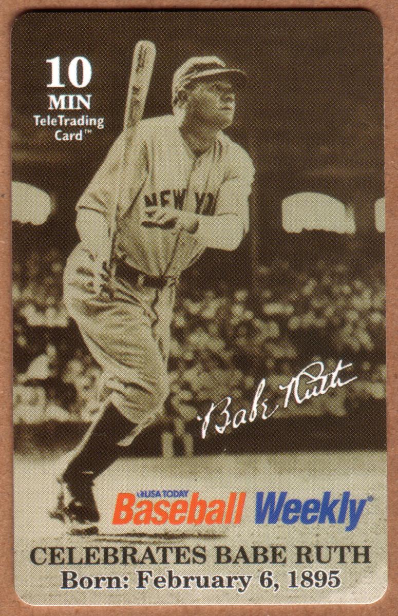 This card was issued by TeleTrading Cards Inc. and commemorates one of the most famous baseball legends and sports celebrities in American history. The sepia-toned image portrays Babe Ruth in an iconic batting stance, capturing the spirit of baseball’s golden era as celebrated by USA Today’s Baseball Weekly.