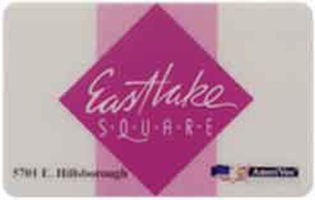 Overall, the card is a collectible advertising phone card intended for use or promotion at Eastlake Square Mall in Tampa, Florida, and it is produced by AmeriVox with WorldCom branding. It serves as a promotional item highlighting the shopping center and telecommunications services connected to WorldCom.