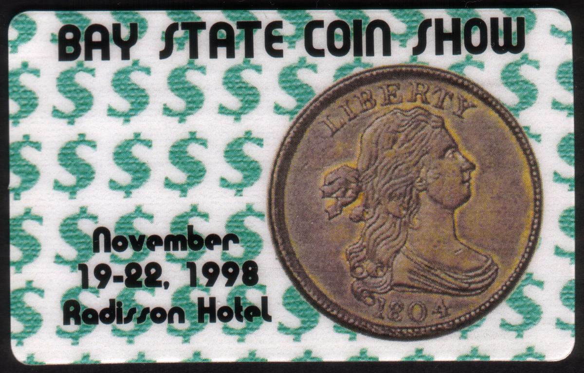 This phone card serves as a collectible item connecting the realms of numismatics and telecommunications. It references coins, collectibles, numismatists, money, currencies, and currency, aligning with the interests of attendees of the Bay State Coin Show. The design and text make it clear that this card commemorates a specific event related to coin collecting in Boston in late 1998.