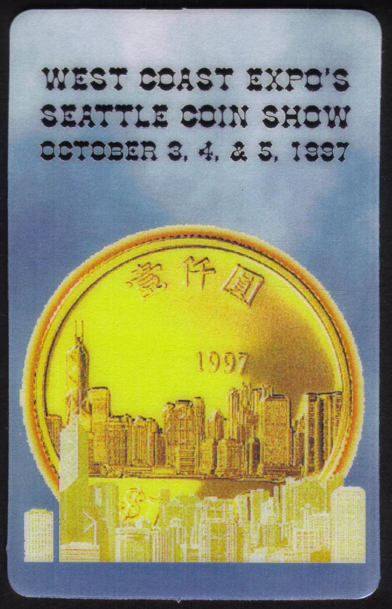 This collectible chip card serves as a memorabilia piece that connects the 1997 Seattle Coin Show with Asian gold coin collecting, appealing to collectors of numismatic items and related currency events. The precise references to Tell-One Inc. and the event location strengthen its value to those interested in numismatic trade shows and specialty coin culture.