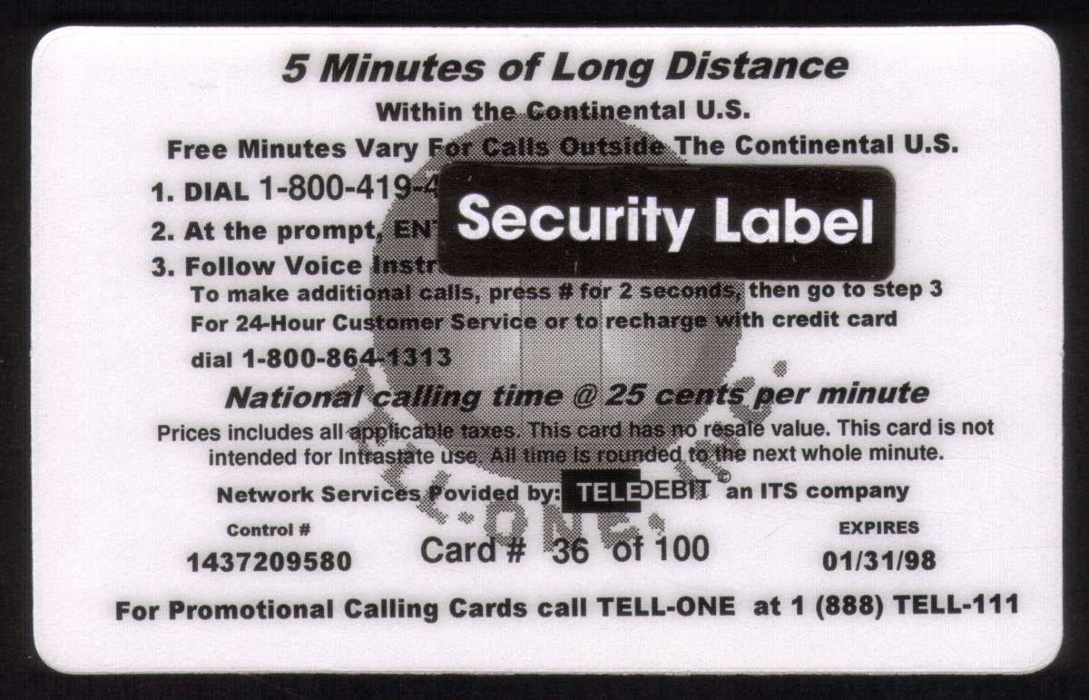 Since we have the world's largest inventory of USA phonecards for collectors, you will not necessarily receive the identical serial/batch/PIN number that we have scanned/pictured.
