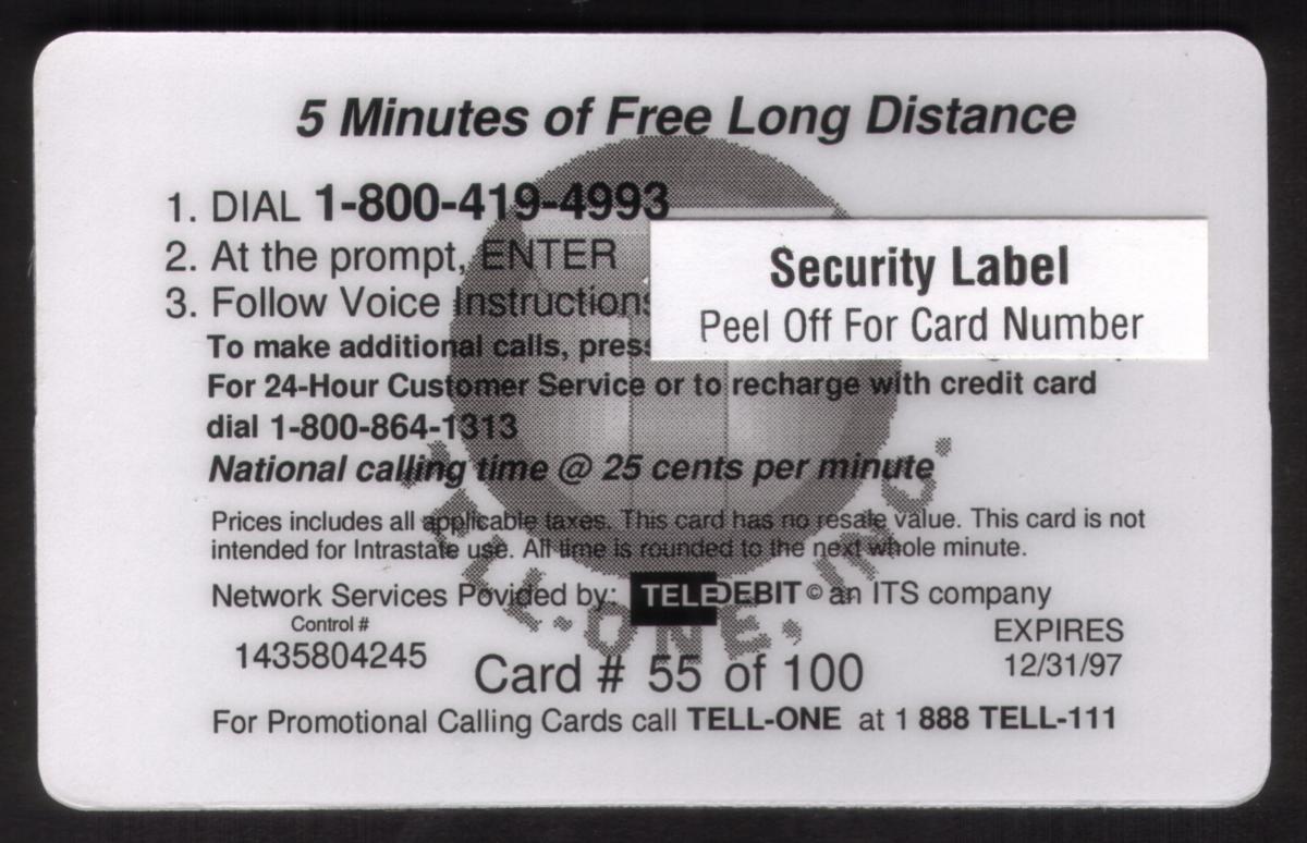 Since we have the world's largest inventory of USA phonecards for collectors, you will not necessarily receive the identical serial/batch/PIN number that we have scanned/pictured.
