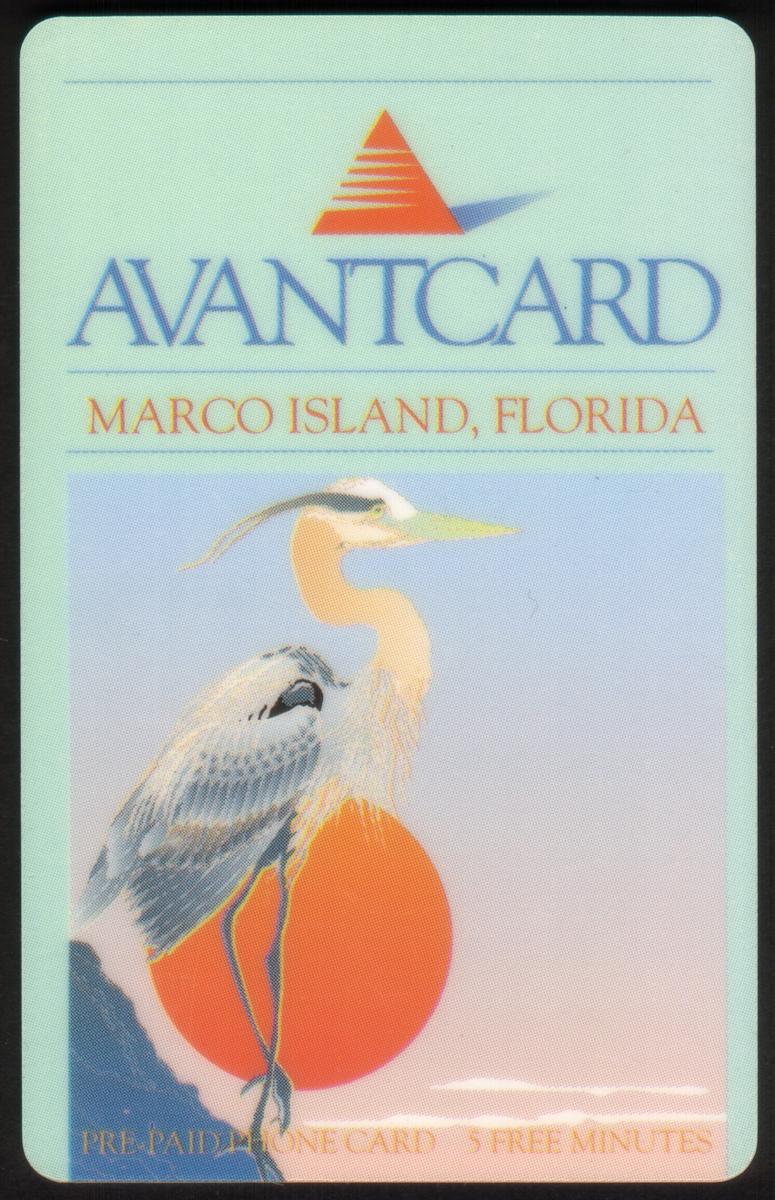 This phone card is intended for telecommunication use and is marked as “USED,” signifying that it has been previously utilized. The blend of the blue heron illustration with the specific geographic reference to Marco Island, Florida, makes this a unique and visually appealing collectible for those interested in nature, bird-themed art, or regional memorabilia from Florida.