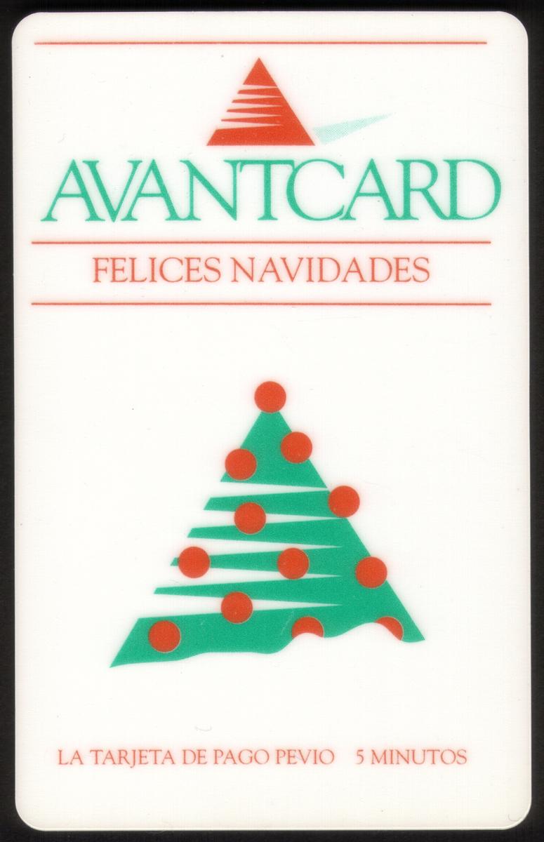 The card carries the branding "AvantCard" at the top right in white lettering. The design is clean and festive, associated with the promotional Christmas theme conveyed by the decorations and the greeting. The color scheme and graphic elements emphasize the holiday spirit in a clear and straightforward manner.