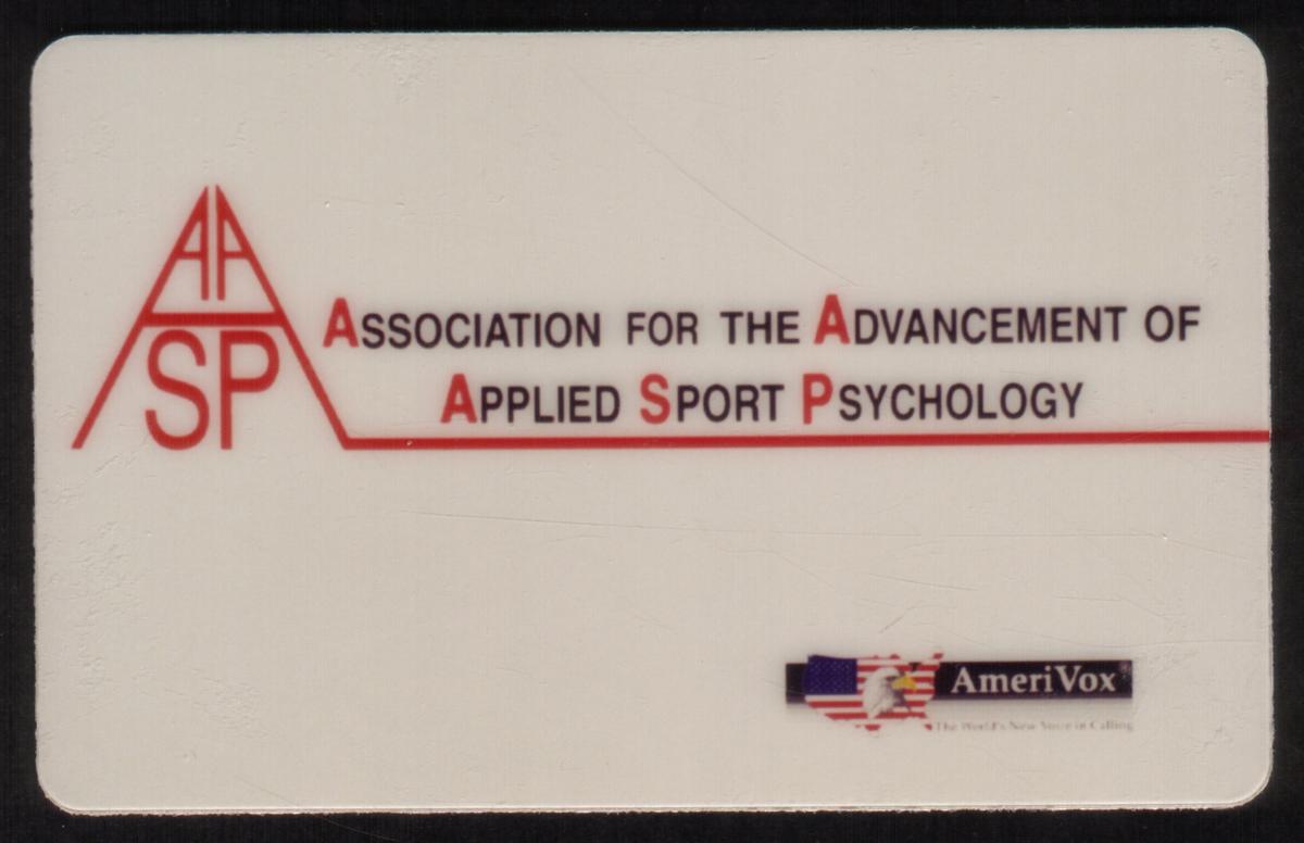 No additional images, names, or geographic references are present on the card front. The overall design emphasizes the relationship between psychology, sport science, and the AAASP organization itself. The layout directs attention to the organizational name and thematic graphic without any other distractions.