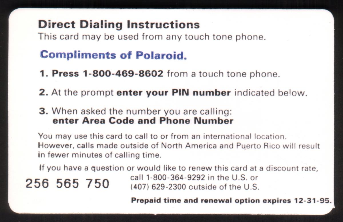 Since we have the world's largest inventory of USA phonecards for collectors, you will not necessarily receive the identical serial/batch/PIN number that we have scanned/pictured.
