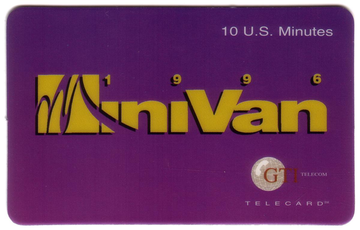 Overall, this is a promotional collectible phone card merging Chrysler’s 1996 MiniVan branding with GTI Telecom’s corporate logo. The card serves as a marketing piece highlighting transportation and telecommunications collaboration without any imagery of the vehicle itself.