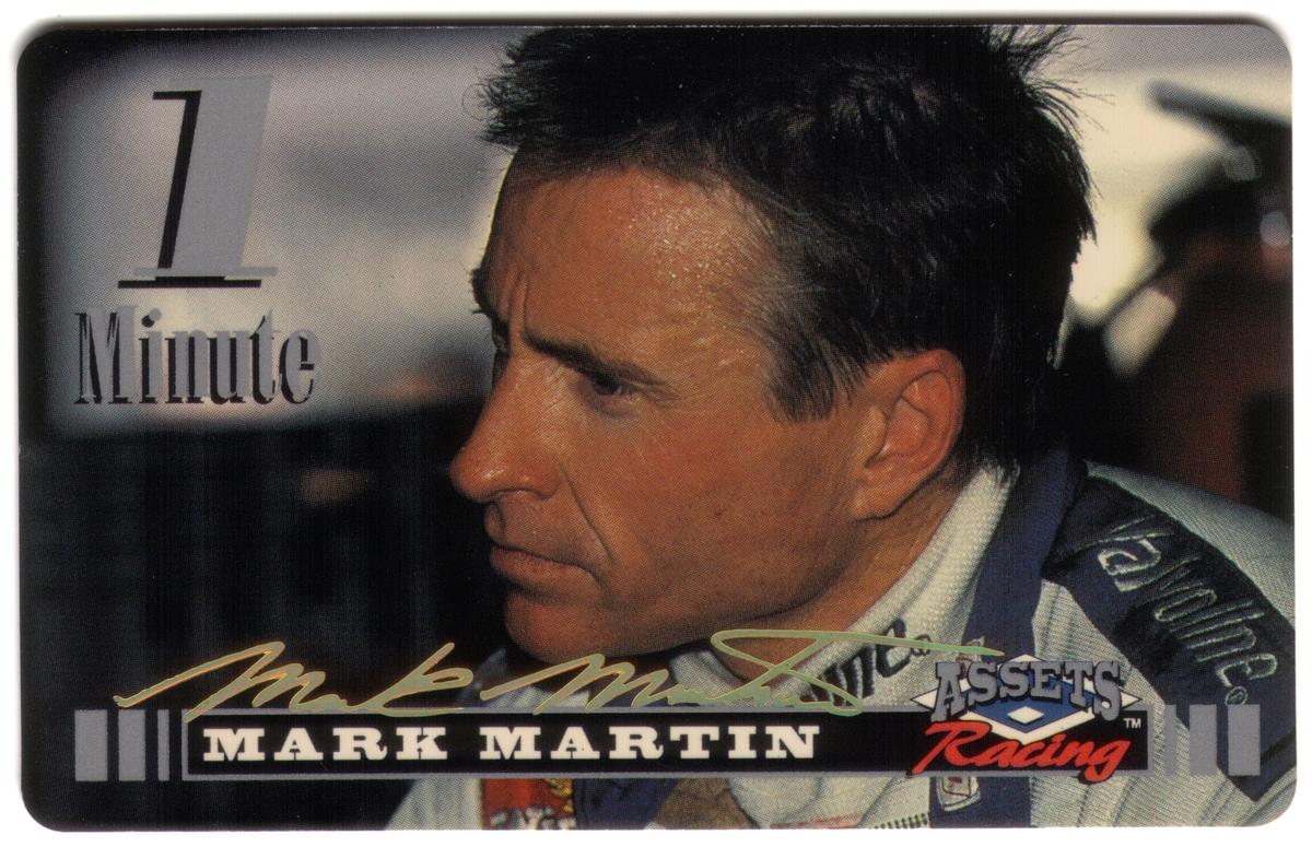 Text on the card clearly identifies it as related to NASCAR and auto racing. The printed signature of Mark Martin adds collectible value and authenticates the card as a tribute to his 1995 racing presence. The Finish Line Racing branding further confirms the card’s focus on motorsports and collectors’ interest in NASCAR memorabilia.