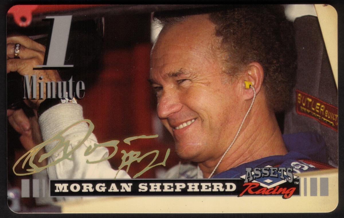 Overall, this collectible card represents a specific moment in NASCAR history, combining Morgan Shepherd’s name, his race car, and detailed automotive graphics. The use of printed signature and the related text firmly associate the card with the 1995 Assets Racing collection, giving it a strong connection to that racing era.