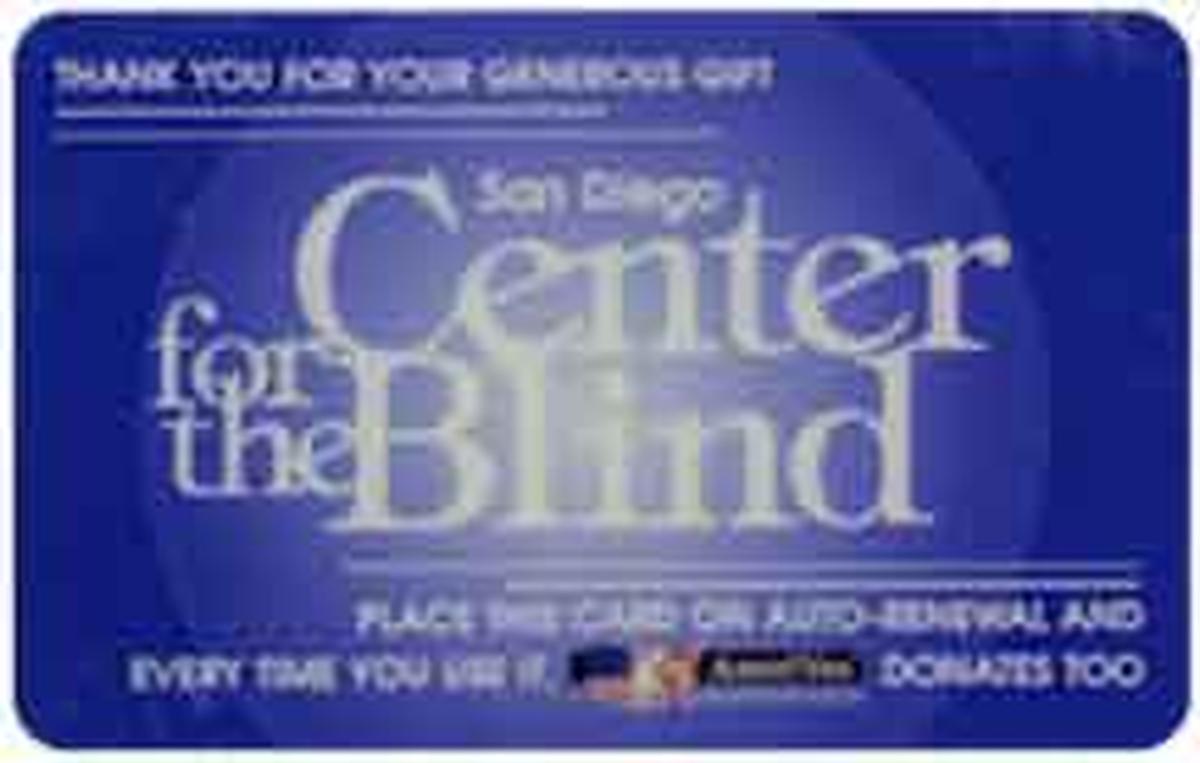 The card prominently displays the "Center For The Blind" located in San Diego, California, alongside the "AmeriVox" logo, linking the design to these organizations. The combination of the racing imagery and corporate branding points to a promotional or commemorative purpose related to these entities.