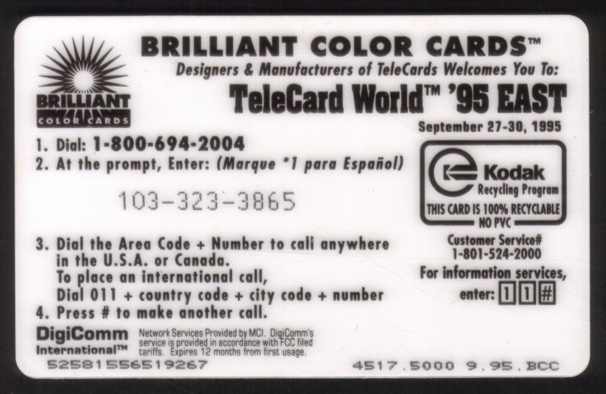 Keywords: Telecard Events, show cards, New York City, Americana, Statue of Liberty, city skylines, cities, wtc, twin towers, taxi cab, telecard world 1995 east, digicomm international, mci, kodak, world trade center, Brilliant Color Cards
