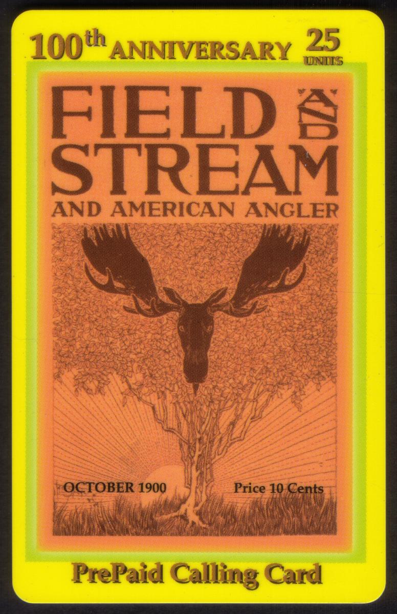 Overall, the card celebrates the legacy of sporting media with a strong focus on animals and hunting traditions. It is a collectible item capturing the historical and outdoor themes associated with Field & Stream’s centennial commemoration.