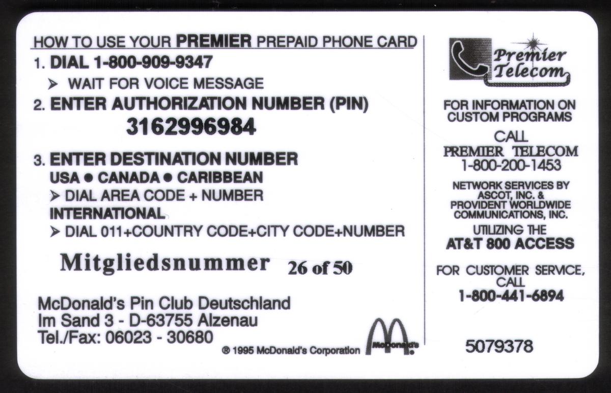 Since we have the world's largest inventory of USA phonecards for collectors, you will not necessarily receive the identical serial/batch/PIN number that we have scanned/pictured.