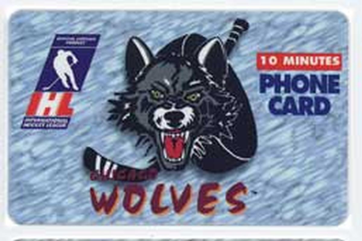 No player images or additional textual details appear on the front of the card. The card is fully devoted to showcasing the Chicago Wolves in a format suited for the sports collectible market. It represents a piece of memorabilia connected to hockey fans and collectors affiliated with the IHL and its teams.