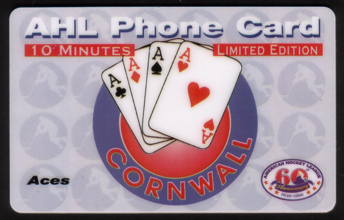 Overall, this piece is a collectible hockey card linked with the American Hockey League’s 60th anniversary celebration, featuring the Cornwall Aces hockey team logo and relevant hockey symbols, making it an item of interest for hockey fans and card collectors who follow the AHL.