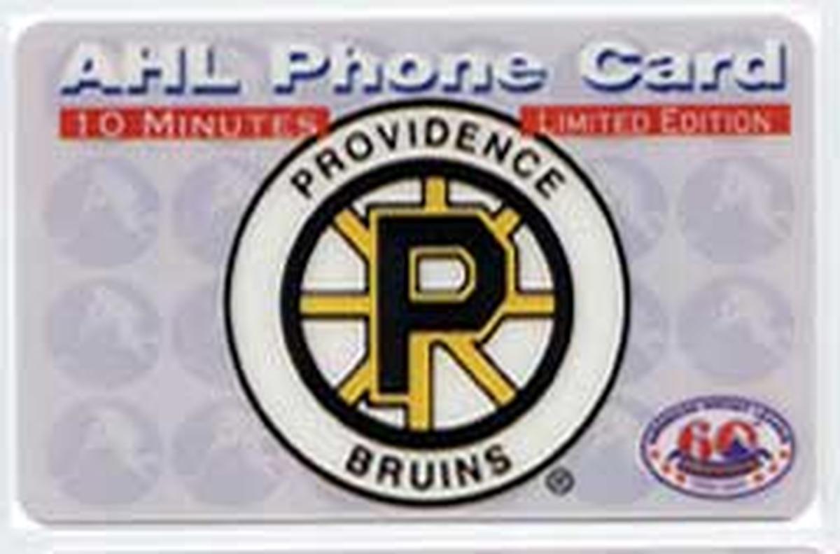 This card commemorates the sport of hockey, specifically focusing on the AHL, which is a professional minor league in ice hockey. The presence of official sports logos and team branding makes this card a collectible item for hockey fans and AHL enthusiasts. The design is clean and visually striking, centered entirely on the Providence Bruins and the league’s milestone anniversary.