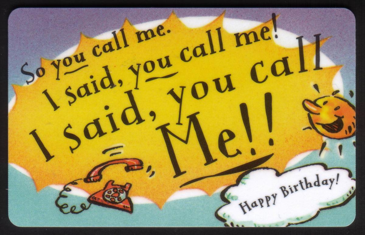 The collectible phone card titled "So You Call Me..." features a colorful cartoon-style illustration themed around birthdays and telephones. The main image depicts a cheerful animal character holding a traditional corded telephone receiver up to its ear, suggesting the act of making a birthday call. The background includes festive elements consistent with a birthday greeting, contributing to the celebratory mood of the card. The colors are bright and engaging, aimed at conveying warmth and happiness.
