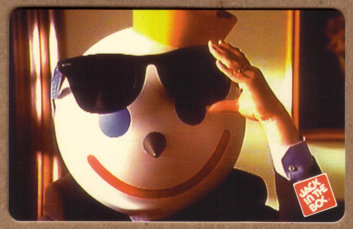Set of four Jack In The Box promotional cards featuring mascot in scenes of cool confidence, professionalism, homeliness, and outdoor fun. |